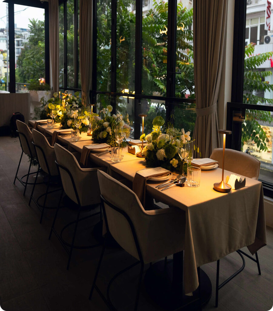 An intimate and refined private dining space, thoughtfully designed with flexibility to accommodate strategic meetings, important conferences, or heartfelt gatherings. Blending professionalism with a sense of elevated experience, it serves as the perfect setting to leave a lasting impression with every encounter.